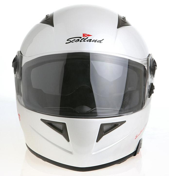 Casco integrale dal design sportivo ed essenziale, con finitura bianca lucida ideale per chi cerca protezione e stile sulla strada.