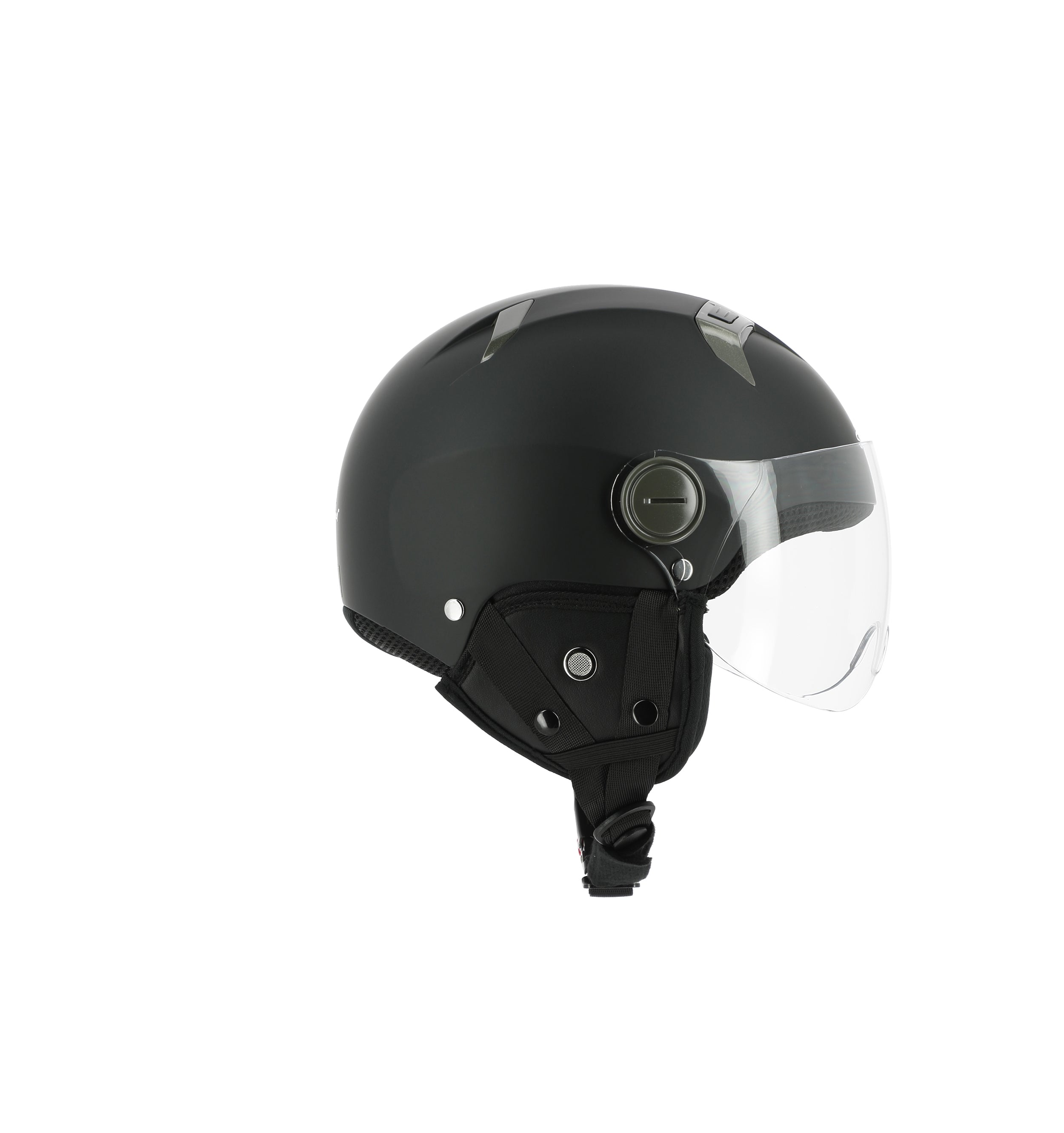 La calotta in policarbonato garantisce protezione e durata, mentre la visiera esterna antigraffio in stile elicotterista offre un'ampia copertura del viso.
