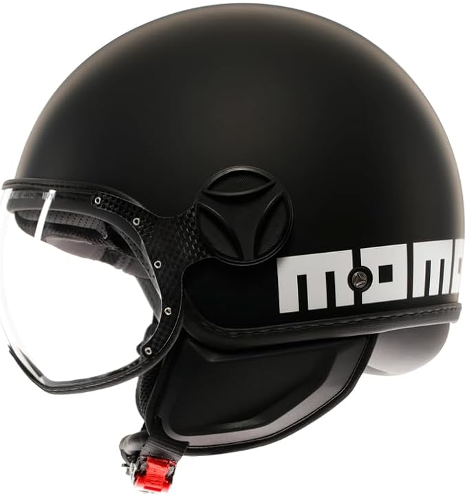 Visiera sferica con trattamento antigraffio e con assorbimento delle radiazioni fino a 400 micron bordata in pelle e con sostegni di supporto in carbonio aeronautico.